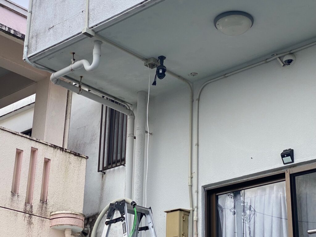 こちらは、浦添市にあるN様宅にも防犯カメラを設置致しました。こちらは、安心セットの方でWi-Fiを有線で繋いで施工させてもらいました!