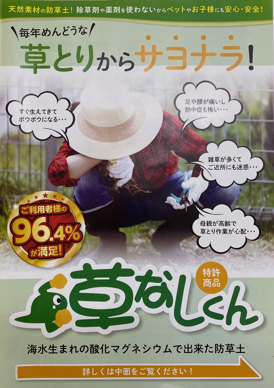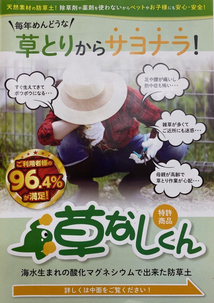 こちら駐車場全体では無く、雑草が多く生える箇所で平坦な場所なので、草なしくんで施工します。