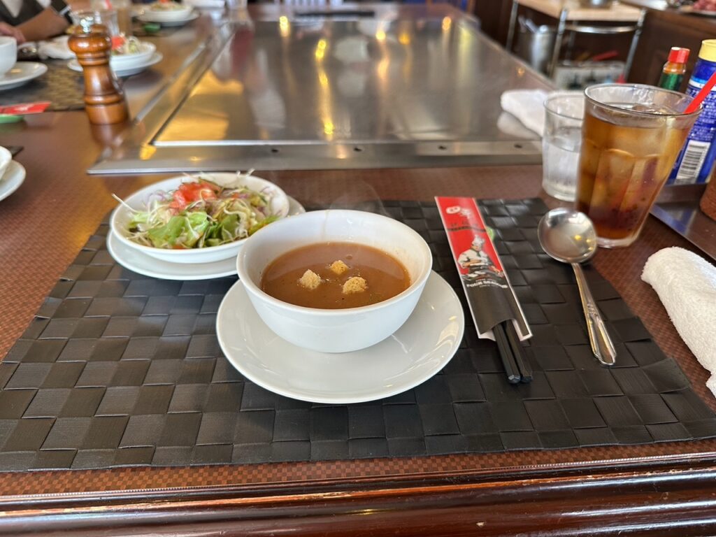 前菜のスープとサラダも美味しい〜☺️