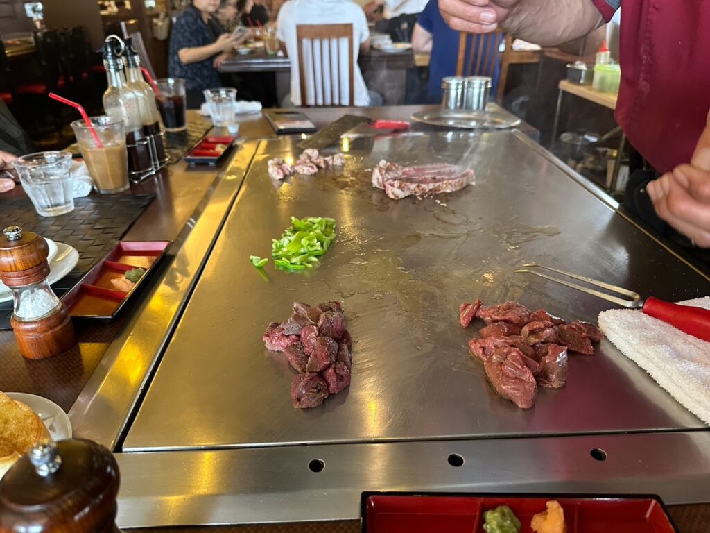 こちらのお店は鉄板焼きスタイルで目の前でお肉を焼いてくれます。