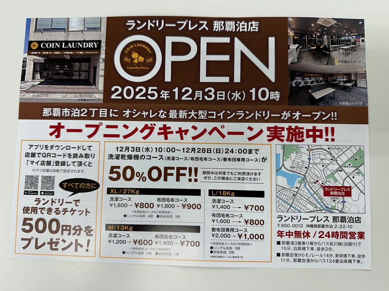 【ランドリープレス 那覇泊店】12月3日グランドオープンです✨✨