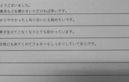 毎回ていねいに点検に来てくれるので助すかっています 草なしくんのおかげで ストレスない毎日を過ごせて …