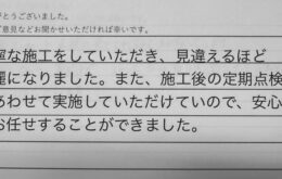 丁寧な施工をしていただき、見違えるほど 綺麗になりました。また、施工後の定期点検も 合わせて実施して …
