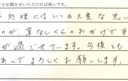 雑草処理にはいつも大変な思いをしていたのが、草なしくんのおかげで安心して生活できています。今後ともお …