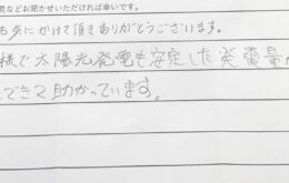 いつも気にかけて頂き、ありがとうございます。 おかげさまで、太陽光発電も安定した発電量が確保できて助 …