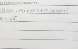丁寧な説明としっかりとメンテナンスで満足