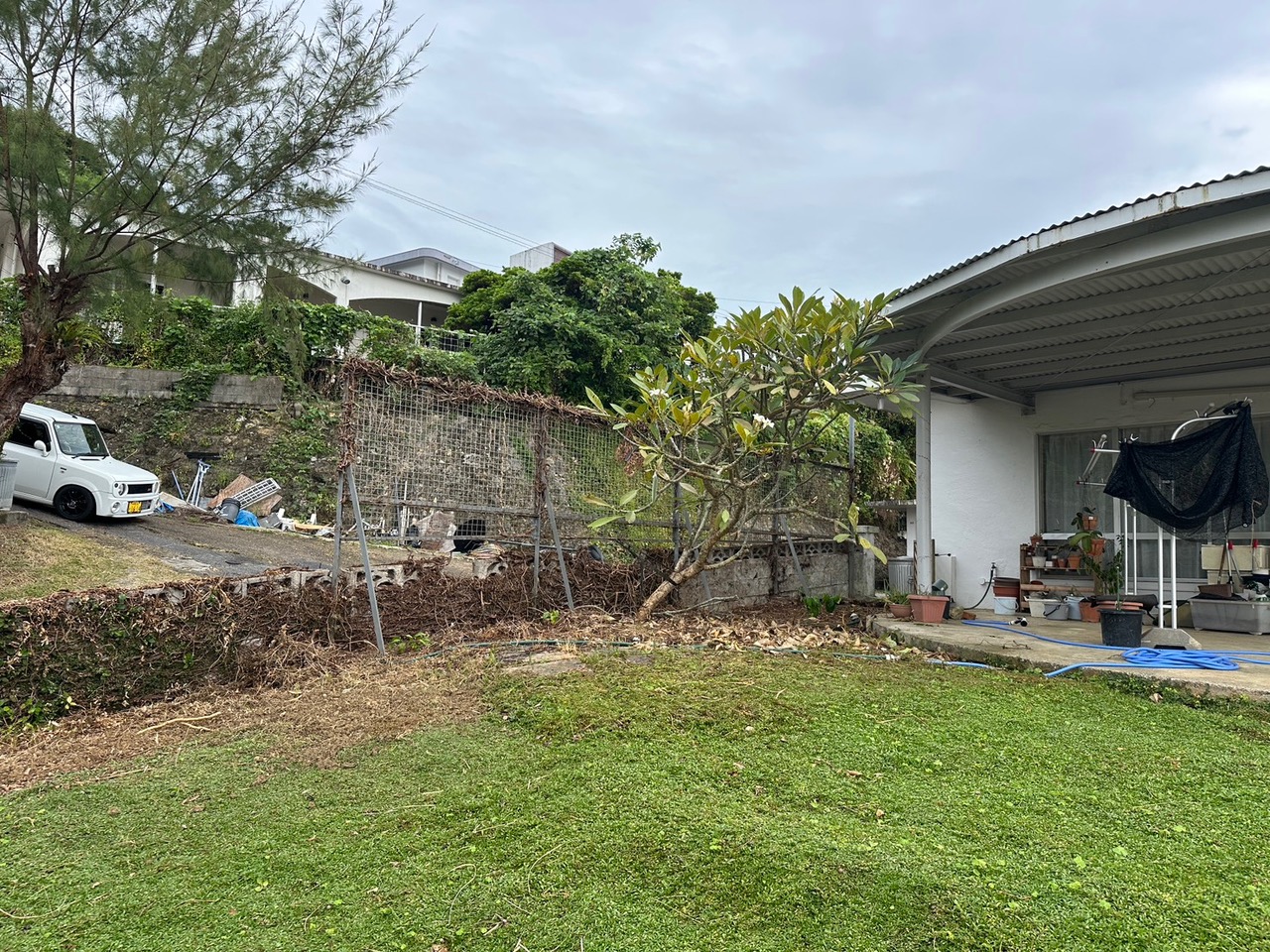 沖縄の頑固な雑草対策として草なしくん施工を行なっています。